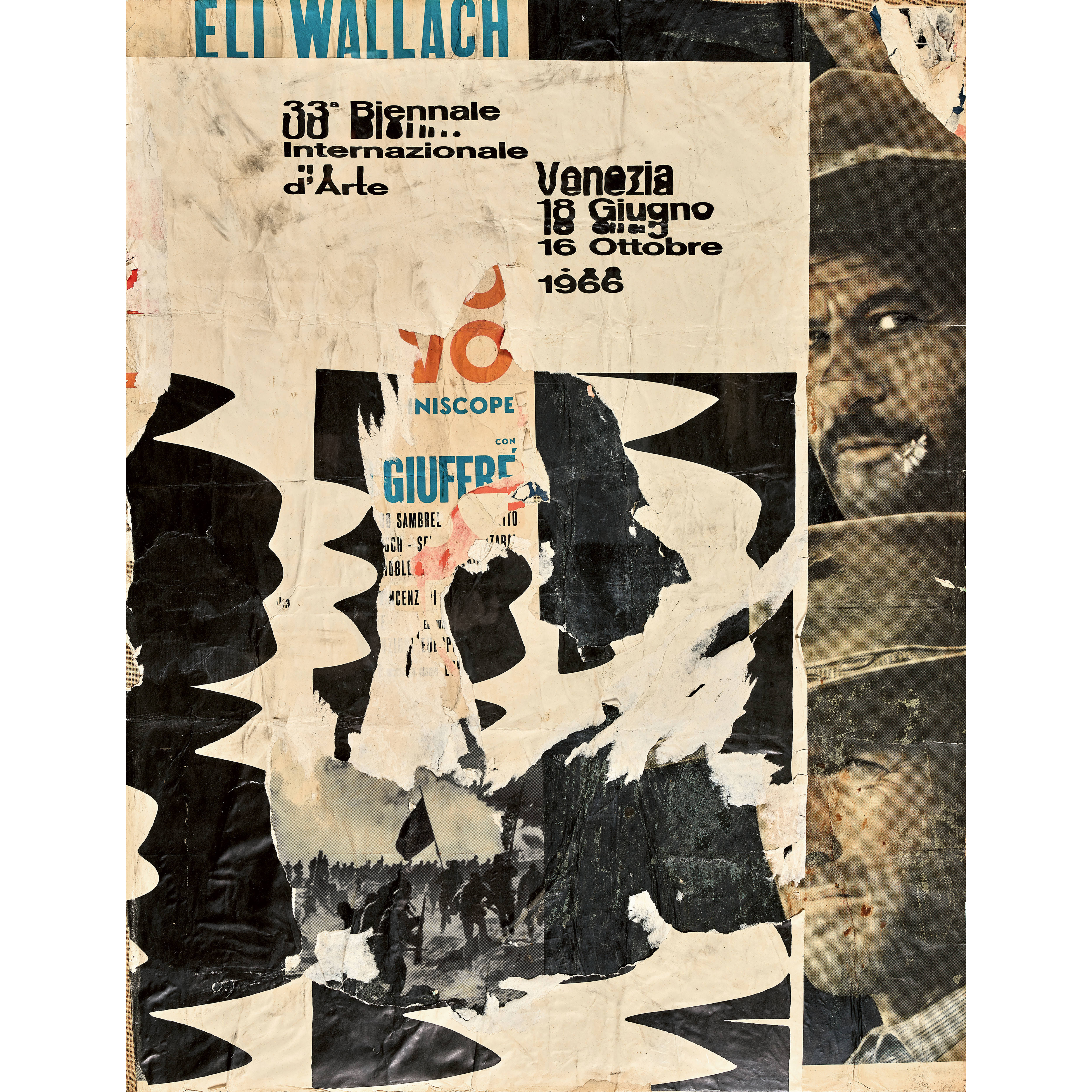 Zwischen 1964 und 1977 bereiste Hains verschiedene italienische Städte. Er war gerade in Venedig, als die umstrittene Entscheidung getroffen wurde, den Preis der Biennale 1964 Robert Rauschenberg zu verleihen. Die Krönung des jungen amerikanischen Künstlers, der mit der Pop Art in Verbindung gebracht wurde, erwies sich als brisant. Hains hingegen teilte die Abneigung gegen die amerikanische Kunst nicht. Er sammelte Plakate der Biennale und stellte sie in seiner ihm eigenen, zerrissenen Ästhetik dar. Der Reiz des angebotenen Werkes liegt darin, dass es den urbanen Stil der Pop Art mit dem manierierten, expressiven Informel verbindet.