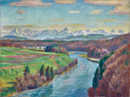Aarelandschaft mit Blick auf Niesen und Stockhorn.
