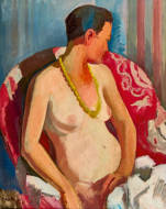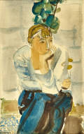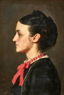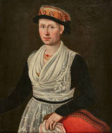 Halbporträt einer Frau im Dreiviertelprofil mit Kopfputz.