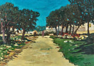 Landschaft mit Bäumen.
