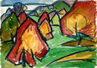 Landschaft mit Dorf.