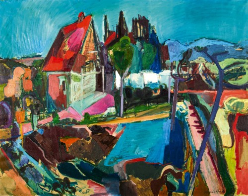 Öl auf Leinwand, sig. u. dat. (19)28 u.r., verso a. Etikett betitelt, 113,5x145,5 cm