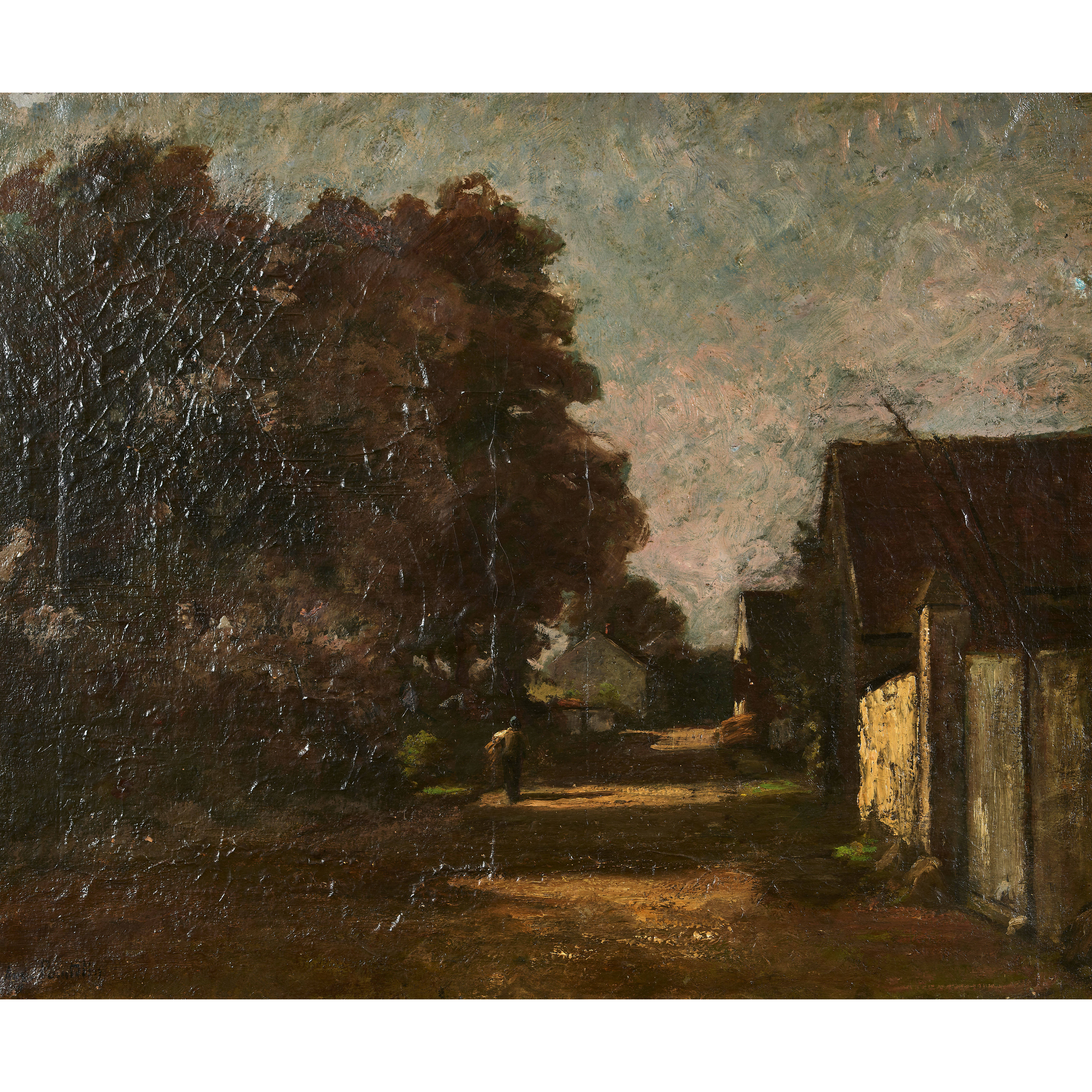 Chemin de village au soleil couchant.