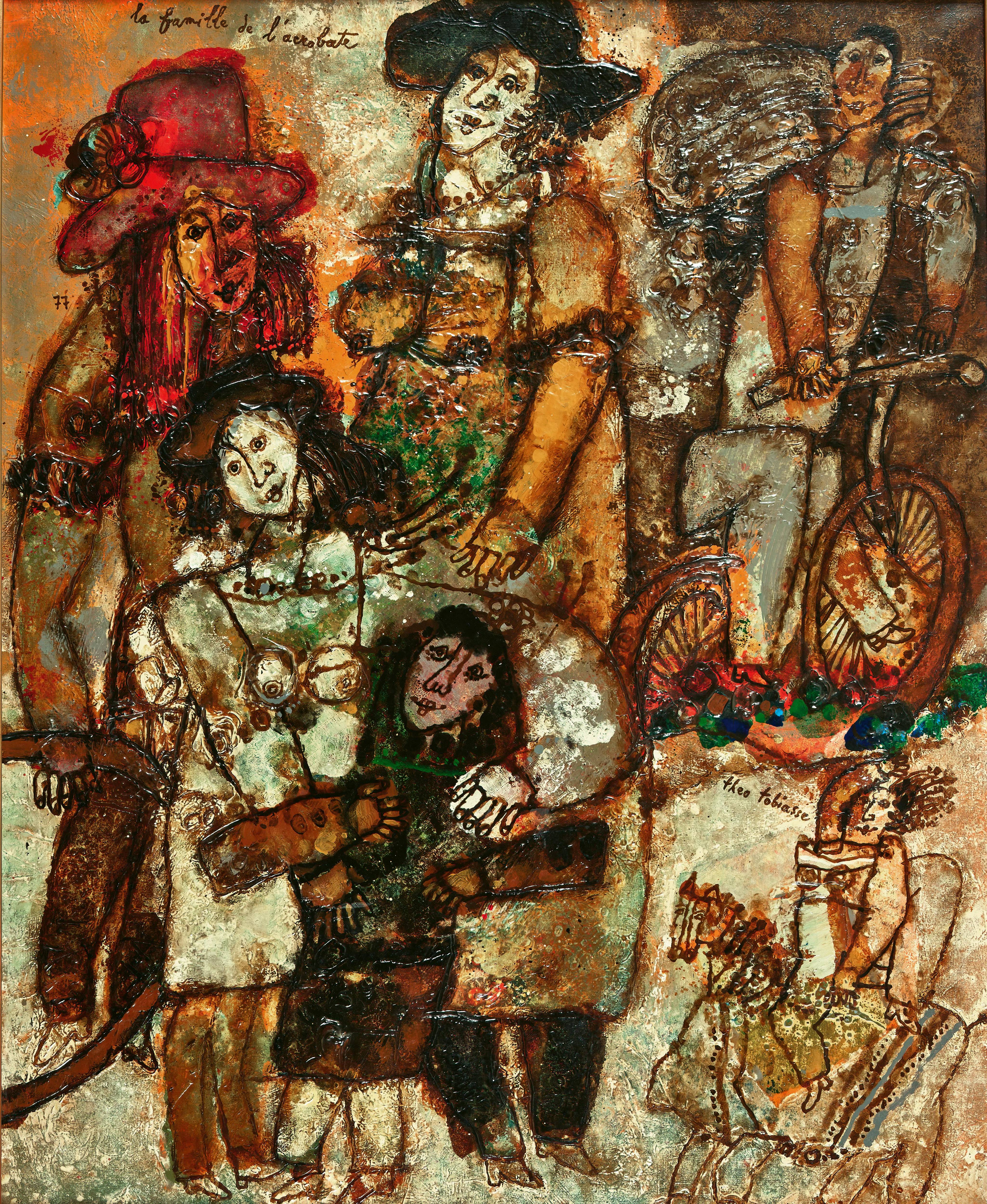 Théo Tobiasse entstammte einer litauisch-jüdischen Immigrantenfamilie, die aus wirtschaftlichen Gründen 1931 nach Paris zog. Hier absolvierte Tobiasse eine Ausbildung an der École des Arts Décoratifs, die durch den Ausbruch des Zweiten Weltkrieges unterbrochen wurde. Die Familie lebte während über zwei Jahren versteckt in der französischen Metropole, ohne die kleine Wohnung je zu verlassen oder sie auch nur zu erhellen. Man verbrachte die Zeit mit Lesen, Zeichnen und Schachspiel, und Tobiasse baute sich einen riesigen Fundus an Zeichnungen auf, aus dem er später schöpfen konnte. Nach Kriegsende arbeitete er während 15 Jahren als grafischer Gestalter für die Firma Hermès in Paris und Nizza. Daneben malte er, meist nachts. Nach einem ersten erfolgreichen Ausstellungsauftritt in Nizza entschied er sich für eine Laufbahn als freischaffender Künstler. Mit seinem von der Nouvelle École de Paris inspirierten Werk fand er rasch internationale Anerkennung und gewann Auszeichnungen wie etwa 1961 den Dorothy Gould-Preis. 1976 verlegte er sein Atelier nach Saint-Paul-de-Vence, und ab 1980 reiste er regelmässig nach New York, wo er sich jährlich für mehrere Monate aufhielt. Dabei war er seinen Freunden und Förderern, den Kunsthändlern Kenneth und Sherri Nahan, nahe. Die Gemälde und Druckgrafiken von Théo Tobiasse befassen sich - vergleichbar mit jenen von Marc Chagall - oft mit Motiven aus der jüdischen Kultur, bergen Anspielungen auf biblische Inhalte und verarbeiten erotische Fantasien sowie Themen der Einsamkeit und Isolation. Der oft inhaltsschweren Thematik seiner Werke stellte der Künstler eine tänzerische, fliessende Formensprache und eine fröhliche Farbigkeit entgegen.