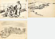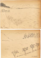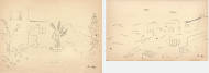 "Ein sitzendes und kniendes Mädchen unter Blättern".