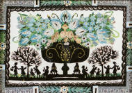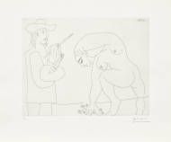 "Peintre et femme cueillant des fleurs".