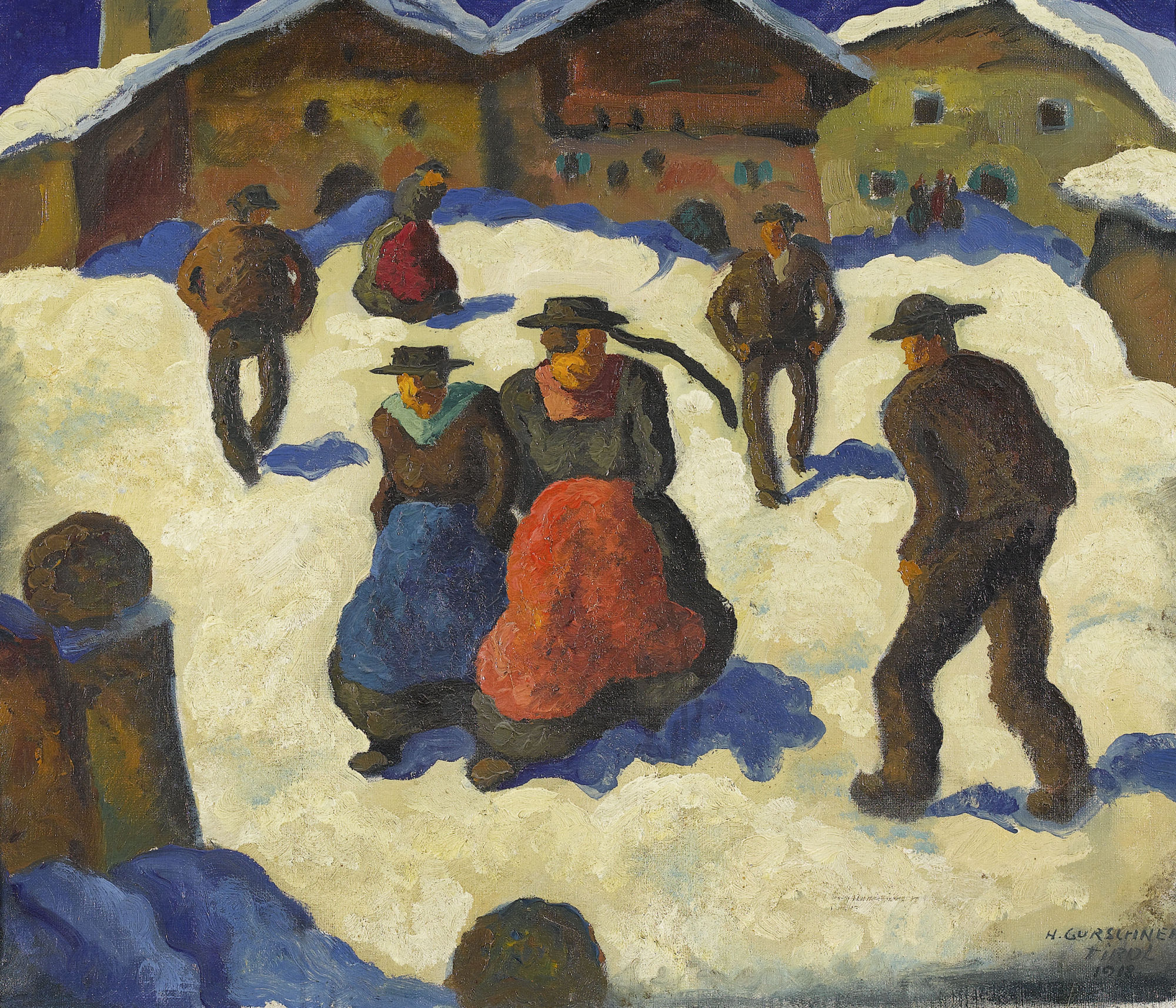 "Winterlicher Kirchgang im Tirol" ist eine frühe, durchwegs folkloristisch geprägte Arbeit des Künstlers, in der sich seine grosse Lust an der dekorativen Qualität plakativer Farben in Verbindung mit narrativen Elementen ausdrückt und die gleichzeitig eine enge künstlerische Nähe zu Werken des Tiroler Malers Alfons Walde verrät.