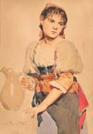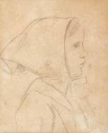 "Mädchen mit schwarzer Haube, vor rotem Grund".