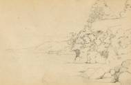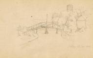 "Vor dem Anker-Haus: Cécile Anker mit Katze".