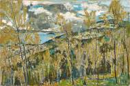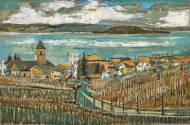 Blick auf Twann am Bielersee und die St. Petersinsel.