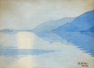 Blick von Bipschal auf den Bielersee und die St. Petersinsel.
