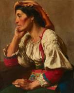 Frauen mit Kindern bei der Andacht vor einem Steinkreuz.