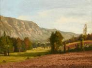 Pleinair-Maler an der Staffelei mit Kuhherde.
