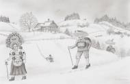 Appenzeller Landschaft mit winterlichen Holzfuhren.