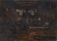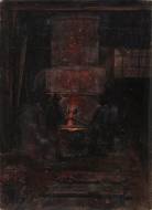 "Arbeiter beim Abstechen am Schmelzofen".